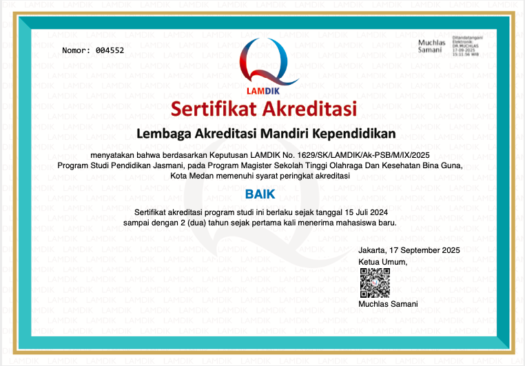 Program Studi Magister Pendidikan Jasmani STOK Bina Guna Raih Akreditasi “Baik