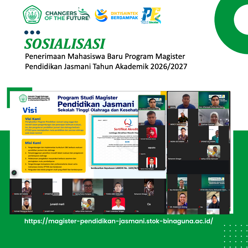 Undangan Sosialisasi PMB Prodi S2 Pendidikan Jasmani STOK Bina Guna Kami mengundang Bapak/Ibu/Saudara/i untuk...