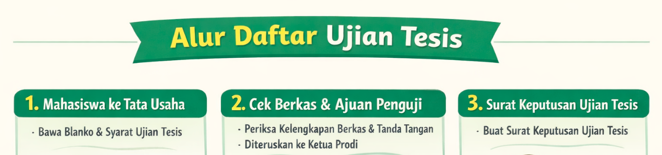 Menyerahkan semua persyaratan Ujian Tesis dalam map plastik warna biru (ke staf prodi).